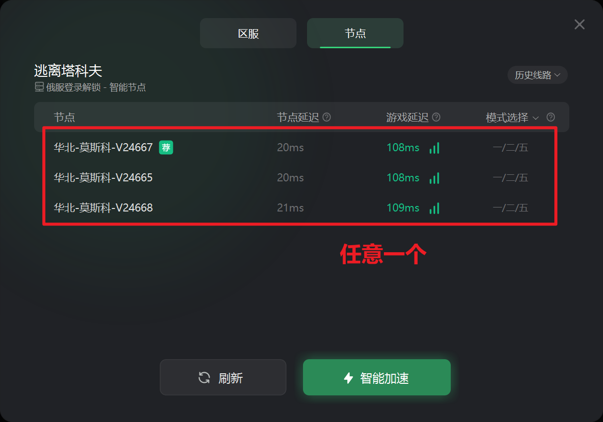 打开月轮添加游戏-逃离塔科夫俄版----智能加速---模式五
