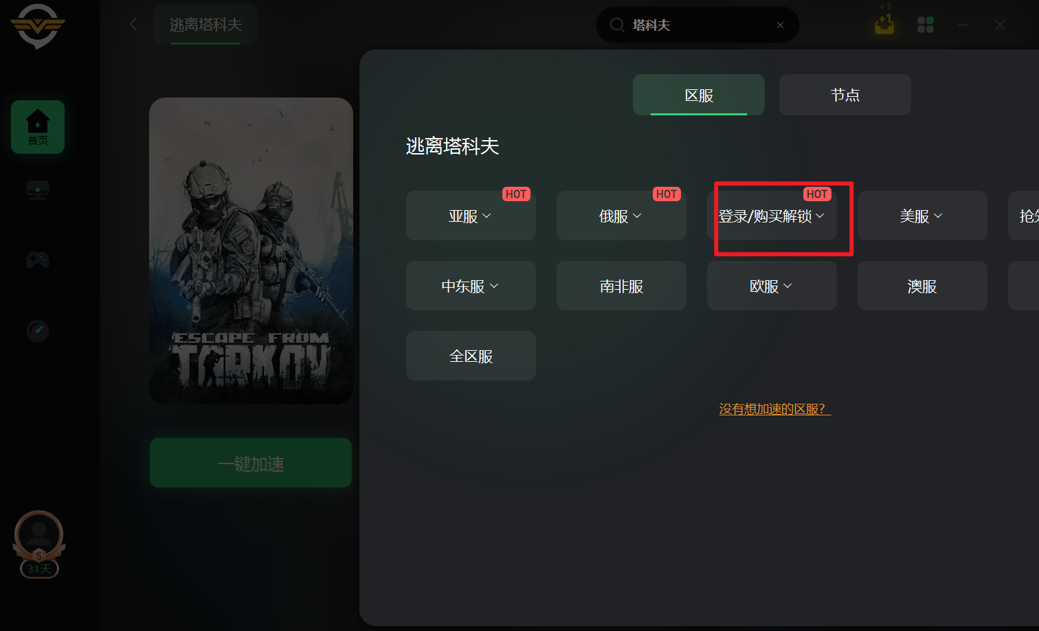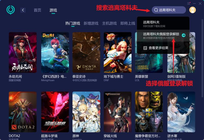 打开奇游找到塔科夫界面选择区分里面找俄服登录解锁,一定记住切换后重新运行游戏登录器!