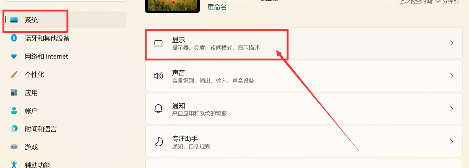 2.点击左侧【系统】,然后在右侧点击【显示】进入;