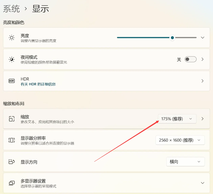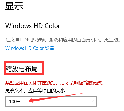 3.在显示页面,点击【缩放】即可设置,设置为100%即可;
