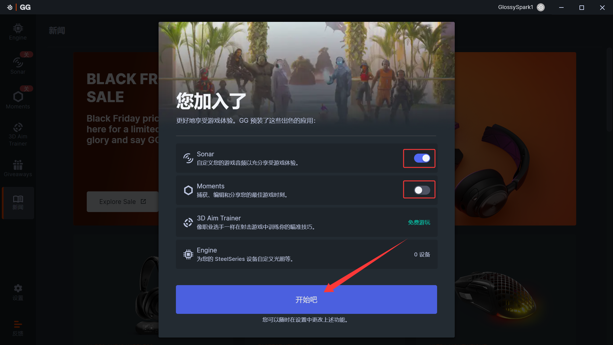 1.点击此处下载SteelSeries,下载后安装并运行登录;
